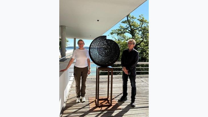 Das Künstlerpaar führt durch die Ausstellung.