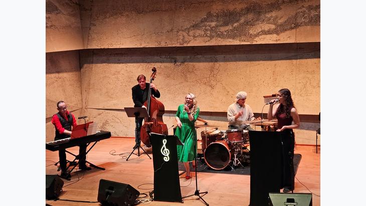 Katy Göllner überzeugt mit ihrer warmen, facettenreichen Stimme und charismatischen Bühnenpräsenz, während Stefan Spatz Schlagzeug und Markus Schlesag am Kontrabass für eine glanzvolle Basis sorgen. Sven Ochsenbauer, einer der renommiertesten Jazzpianisten der Region, verleiht dem Abend mit seinem feinfühligen Spiel eine besondere Note. Ergänzt wird das Ensemble durch Elli Weiß, deren Gesang und Ausstrahlung dem Programm eine zusätzliche emotionale Tiefe verleihen.