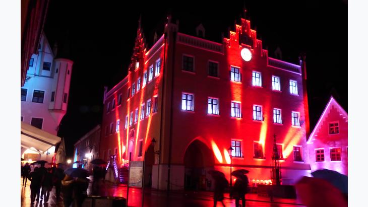 In der Reichsstraße, am Rathaus, in der Sonnenstraße oder vor dem Tanzhaus, am Rieder Tor, am Färbertörle - einfach in der ganzen Stadt verzaubern die Lichter die Besucher an diesem Abend.