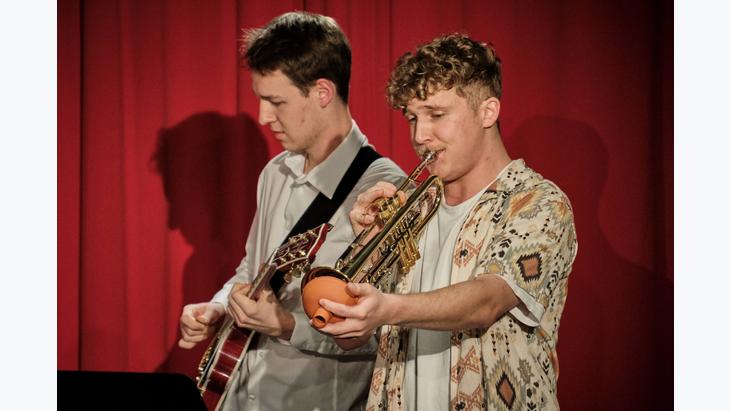 Die Berufsfachschüler*innen für Musik in der Fachrichtung Rock, Pop & Jazz kommen nach Freising und stehen wieder auf der Bühne im Pavillon der Musikschule Freising.