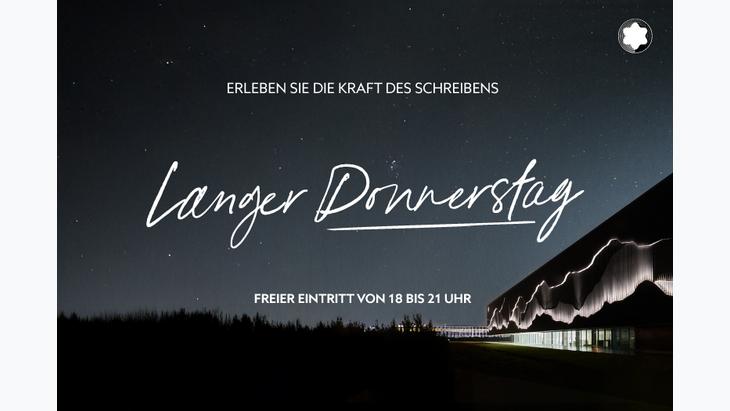 Jeden ersten Donnerstag im Monat ist Langer Donnerstag im MONTBLANC HAUS, das heißt: Wir öffnen verlängert bis 21 Uhr. Sie können von 18-21 Uhr die INSPIRE WRITING Ausstellung kostenlos besuchen und es gibt ein abwechslungsreiches Programm, das jeden Monat neue Inspiration schafft.