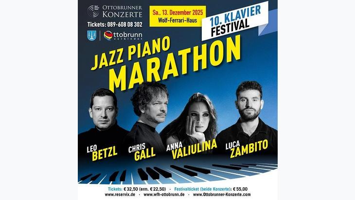 Zum 10jährigen Jubiläum des Klavier-Festivals der Ottobrunner Konzerte wird der beliebte JAZZ PIANO MARATHON diesmal an zwei Abenden stattfinden. An diesem einzigartigen Konzertereignis werden international bekannten und aufstrebende KünstlerInnen die 88 Tasten des Steinway-Flügels quer durch die Jazz-Geschichte bis hin zu neuen und ungewöhnlichen Klängen ausreizen und das Publikum auf eine intensive musikalische Reise mitnehmen, sich dabei aneinander messen, wetteifern und im Abschluss im gemeinsamen unerwarteten Zusammenspiel zusammen finden. Als längste und vielleicht auch älteste olympische Laufdisziplin ist der Marathon Mythen umrankt und fasziniert seit je her als individuelle Grenzerfahrung. Musikalische und stilistische Grenzen werden auch bei dem beliebten Jazz Piano Marathon der Ottobrunner Konzerte überschritten. In der Tat liest sich die Liste der in den vergangenen Jahren aufgetretenen Pianistinnen und Pianisten wie das Who & Who des Jazz-Pianos.