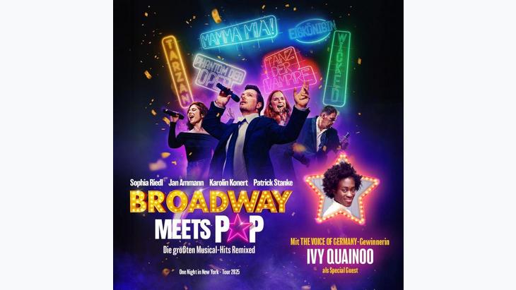 Wenn sich die Magie des Broadways mit der Energie moderner Popmusik verbindet, entsteht ein Live-Erlebnis der Extraklasse: BROADWAY MEETS POP – One Night in New York bringt die größten Musical-Hits aller Zeiten in einem neuen, mitreißenden Gewand auf die Bühne.