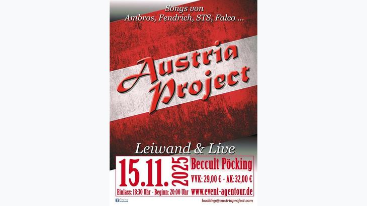 Seit nunmehr über 20 Jahren leben Austria Project ihr Faible für den ewig zeitlosen Austropop. Ob Ambros, Fendrich, STS, Danzer, Cornelius oder Seiler & Speer: Sänger Per Dallabrida zaubert sie mit seiner Stimme und seinem unnachahmlichen Schmäh alle auf die Bühne. Die Band verleiht den Songs dabei immer wieder frische Gewänder und die ins Ohr gehenden Eigenkompositionen nehmen das Publikum mit auf die große Austropop-Reise. Ganz egal ob beim Großevent vor 1000 Zuhörern oder vor 100 Besuchern in der Kneipe, Austria Project definiert ganz einfach „leiwand und live“.