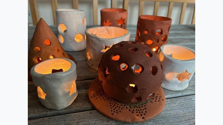 Wer mag, kann am zughörigen Glasurtermin seinem Windlicht Farbe verleihen.